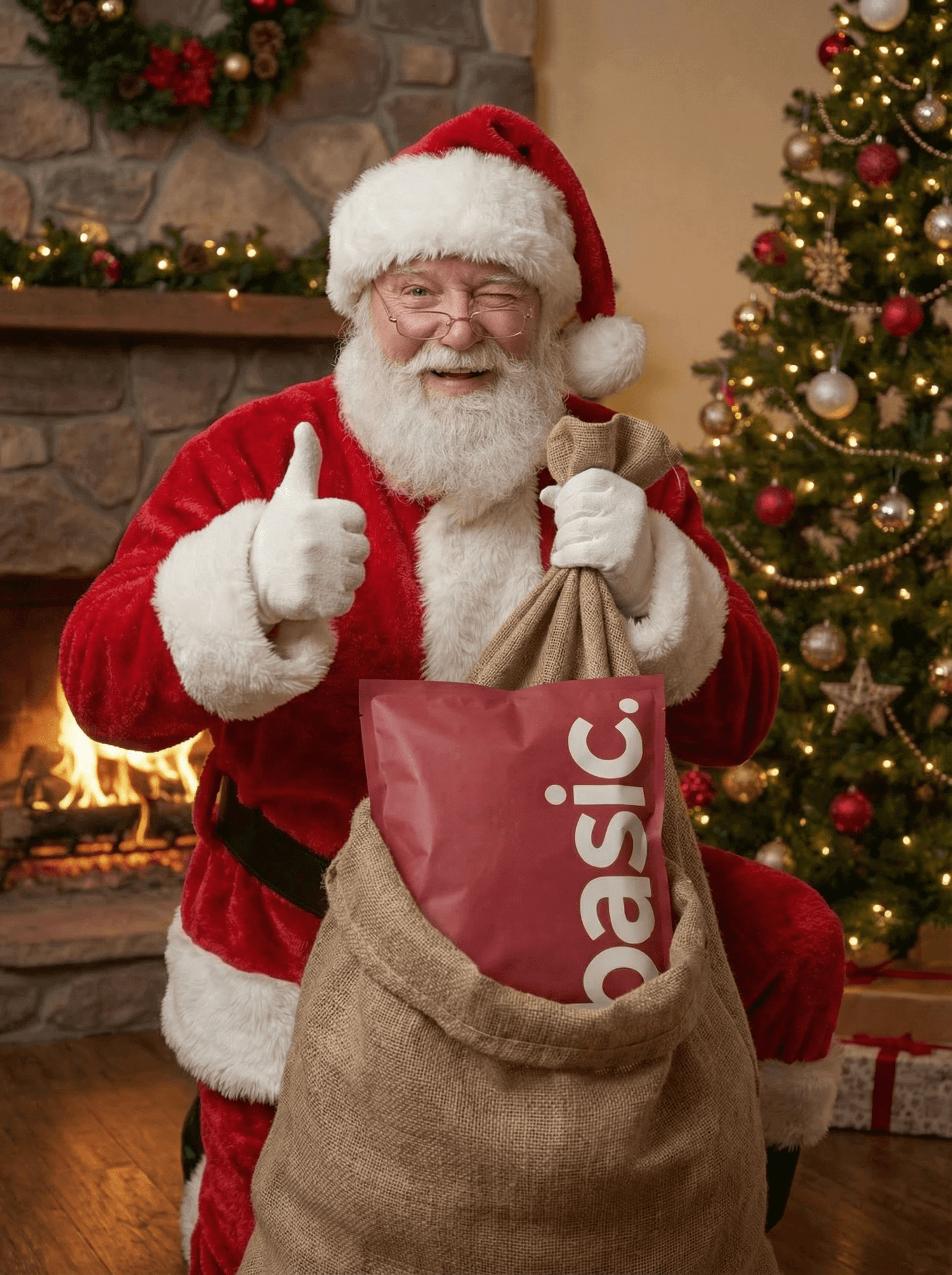 le père Noël arrive avec des cadeaux basic.