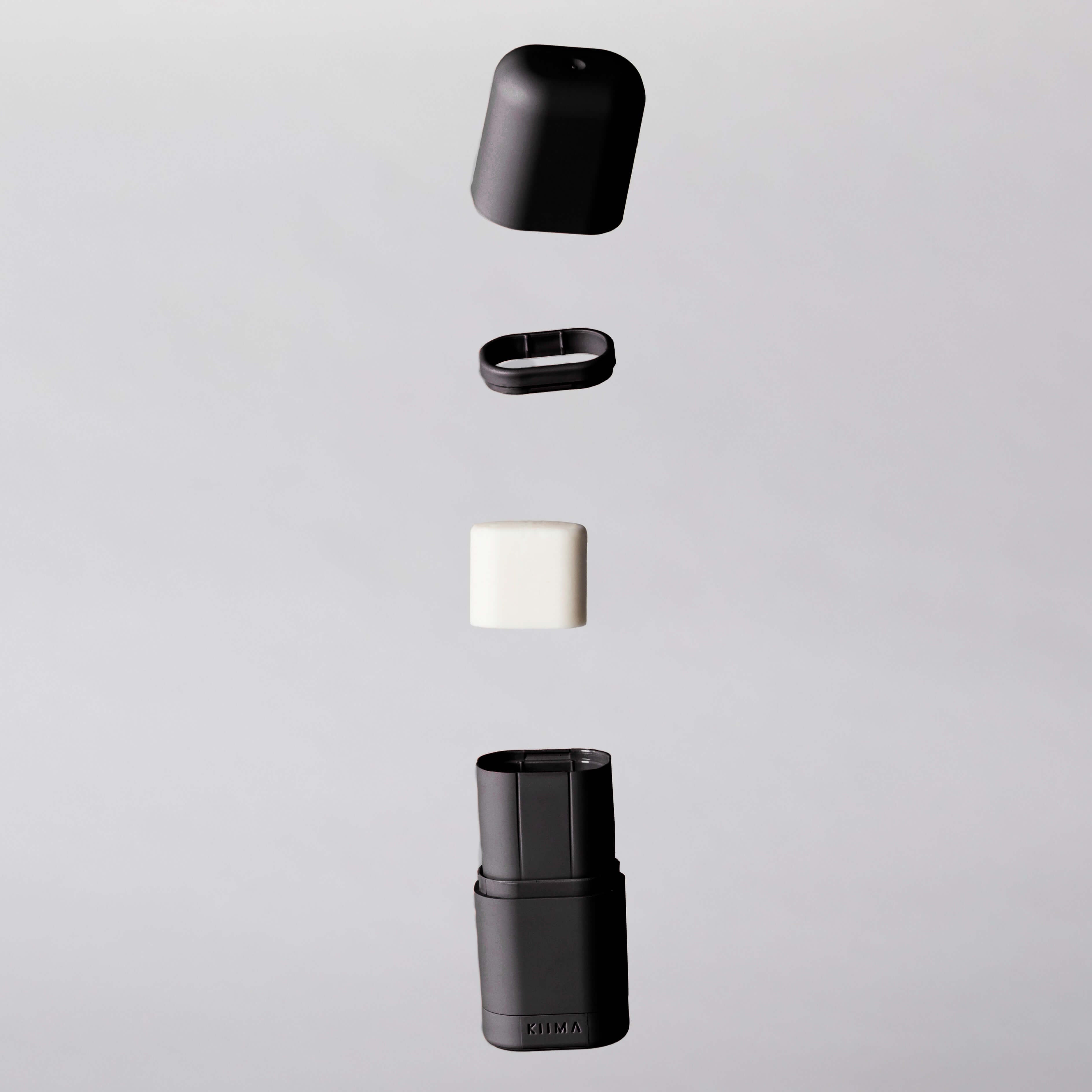 Fabriqué au Québec, l'applicateur de déodorant rechargeable KIIMA est conçu avec un mécanisme unique permettant un rechargement sans plastique. Ses coins arrondis offrent une application très douce pour votre peau. Le design permet une utilisation optimale du déodorant, vous permettant de profiter pleinement de votre recharge basic.